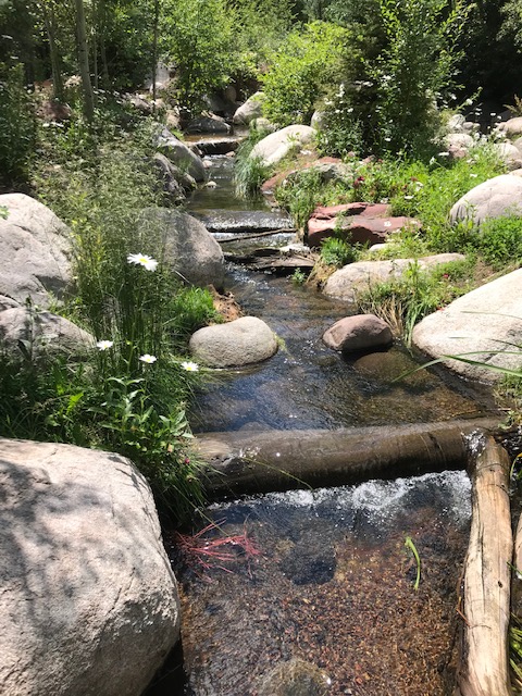 Clear water creek flowing along John Denver Sanctuary to Roaring Fork River.